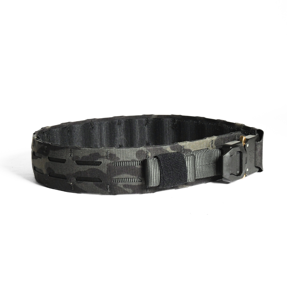 • Laser-cut MOLLE slits (abbreviated 3-row pattern) allow pouches to mount with MOLLE, belt